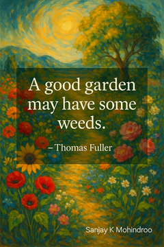 When we focus only on roses, we miss hidden lessons. The stray plants teach us balance and patience. Each unexpected shoot reminds us to stay open. We find strength in seeing flaws as chances to learn. Embracing all parts sparks fresh ideas for #leadership and creativity.