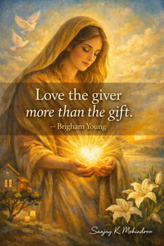 “Love the giver more than the gift.” The line lands with calm force. It shifts attention from objects to intent. It asks for presence, gratitude, and respect. It carries warmth, honesty, and clarity.
