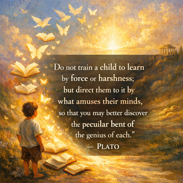 “Do not train a child to learn by force or harshness; but direct them to it by what amuses their minds, so that you may be better able to discover with accuracy the peculiar bent of the genius of each.”