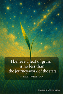 The message is simple but powerful: greatness is not measured by size. The smallest detail of nature carries the same weight as the largest creation of the universe. A leaf of grass is not “less than.” It’s a masterpiece in itself.