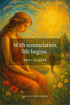 "With renunciation, life begins." Amelia Barr’s words pierce through comfort and illusion. They remind us that our lives often remain half-lived because we hold on—tight—to things that were meant to be released. We keep chasing control, comfort, and recognition. But what if the start of something truly alive only begins when we stop clutching?