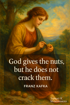 “God gives the nuts, but he does not crack them.” Franz Kafka wrote this line with sharp honesty. It hits hard because it tells a simple truth. Life gives chances, but not outcomes. It gives seeds, not fruit. It gives tools, not success. This line carries a clear message. We all receive something, but our effort shapes what it becomes.