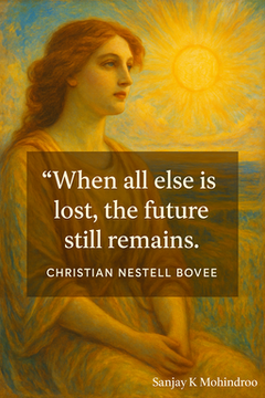 “When all else is lost, the future still remains.” These words are not about blind optimism. They’re about perspective. About remembering that even when everything collapses — your plans, your comfort, your certainty — something unbreakable still exists: the space ahead of you. The next step. The next choice. The future. #Hope #MindsetMatters