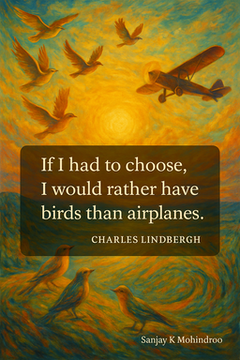 The quote pushes us to see the gap between utility and wonder. Airplanes serve speed. Birds serve a purpose. One moves us across land. The other moves us inside. We need both, yet our attention often leans only toward what is loud and useful. This is the drift the quote warns us about. #motivation #values